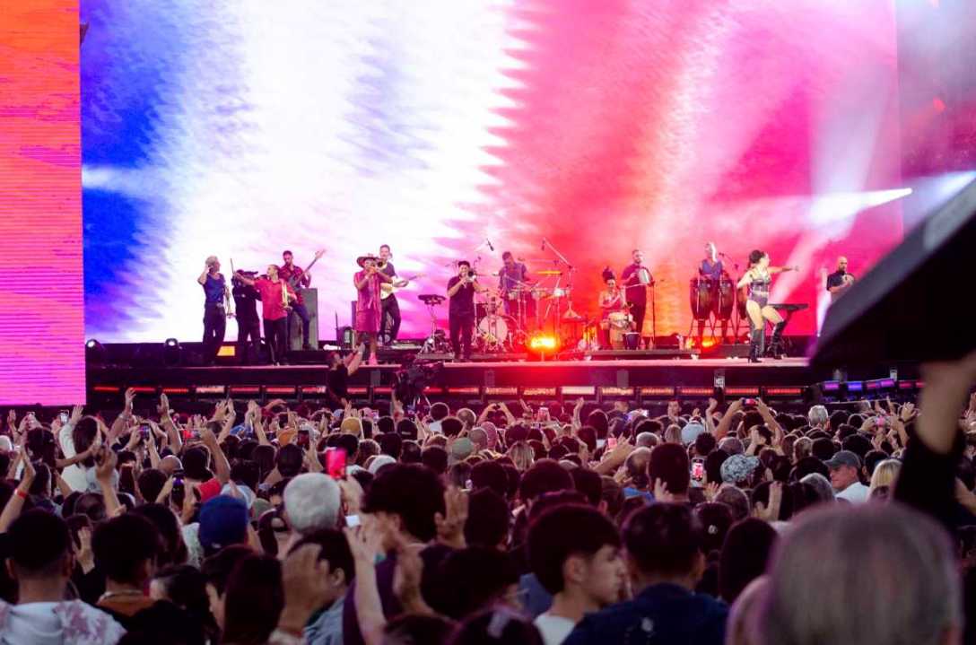 «Esto que somos nosotros, esta fiesta que somos los argentinos, esta unión que genera el arte, la música, la cultura, nadie nos lo va a sacar jamás. Esto depende de nosotros, de quienes estamos acá arriba con ciertas responsabilidades y mucho amor, y de ustedes también de acompañar y de defender. Esta canción es para los mentirosos, para los giles, las malas personas las personas, que no valoran, los antipatria y todos, esta canción se llama K.O»