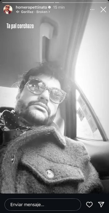 Una hora después, el conductor e hijo de Roberto Pettinato compartió una foto, donde se puede ver a él con un rostro triste y con la frase: «Ta pal corchazo«.