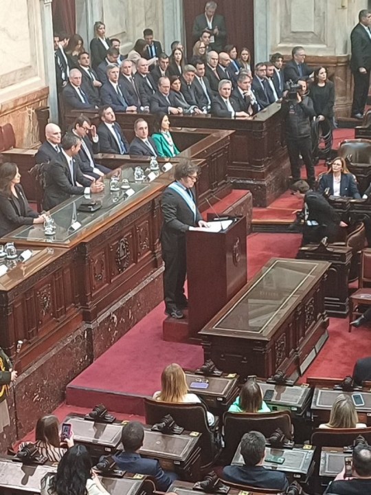 Por su parte, también se vio a Milei subido a un escalón detrás del atril donde habló a los presentes en el Congreso, algo que se asocia a su altura. Es que se comenta que el presidente tiene algunas inseguridades respecto de esto, por lo que solicitó que se haga un cambio en el mueble donde debe establecerse para hablar a su público.