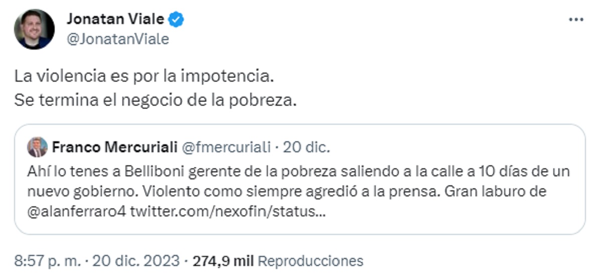 «Díganle CHAU a la Ley de Alquileres que se va» fue una de las publicaciones, respecto del Decreto de Necesidad y Urgencia anunciado días atrás; «Se termina el negocio de la pobreza» agregó el conductor y generó gran controversia por su posición política en el contexto actual, lo que se reflejó en miles de interacciones en su cuenta de X.
