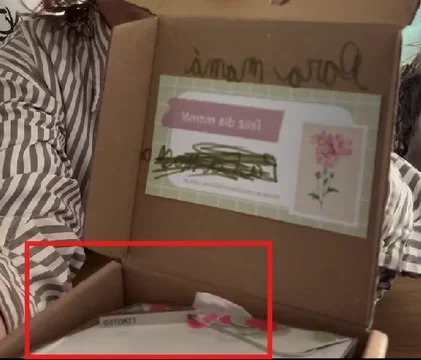 La influencer estaba mostrando los regalos que recibió por el Día de la Madre y, sin querer, dejó ver el nombre de su pequeño.