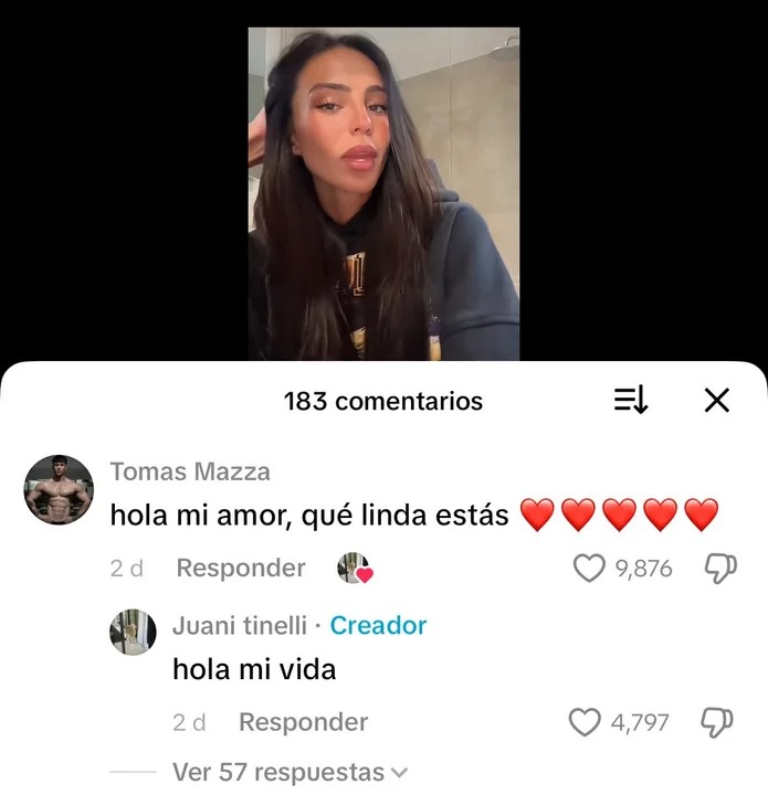 Hace tan solo dos días, Juanita publicó un video en la plataforma e inmediatamente Mazza comentó: “Hola mi amor. Qué linda estás”. El simple comentario del influencer reúne más me gustas que el propio video en sí, un claro indicio de que sus seguidores respaldan la posible relación.