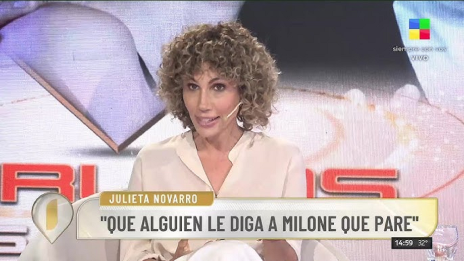 En línea con el conflicto, la directora teatral retomó sobre los dichos de Milone: “Lo que está mal es (…) hablalo con tus amigas. Podés ir a decir, incluso, ‘yo lo amaba’, hasta ahí -gesto de pulgar hacia arriba-”.