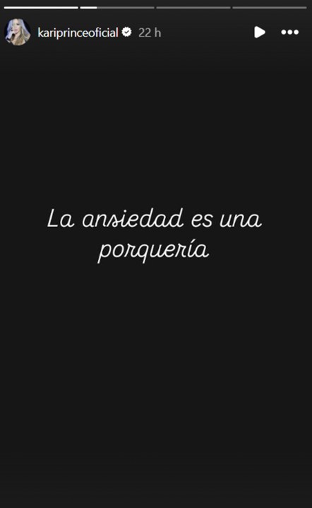 Entre historias de entrenamiento y selfies, la popular cantante de cumbia publicó una nota personal sobre fondo negro y con letras blancas: «la ansiedad es una porquería«, aseguró Karina en sus historias de Instagram y alertó, una vez más, a sus seguidores.