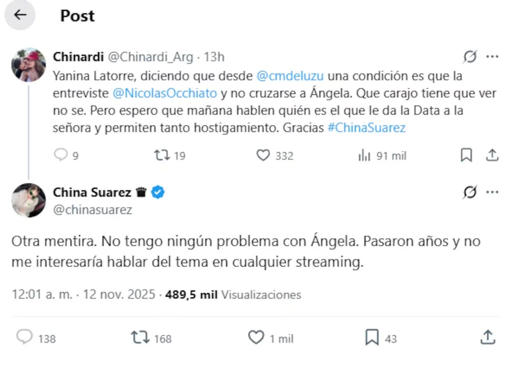 La China Suárez respondió desde X y negó rivalidad con Ángela Torres: “Otra mentira”