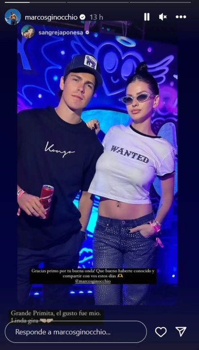 «Grande Primita, el gusto fue mío. Linda gira«, respondió Marcos en su red social Instagram junto a un emoji de puñitos chocándose, en lo que pareciera un guiño de amistad entre ambos.