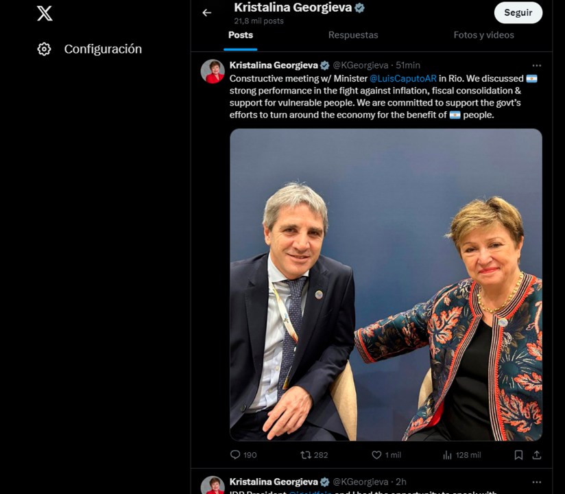 Georgieva no mencionó la posibilidad de un nuevo acuerdo con el gobierno argentino, aunque Caputo ha manifestado públicamente su interés en ello. Las comunicaciones oficiales del FMI suelen ser breves y no detallaron pasos futuros concretos en esta ocasión.