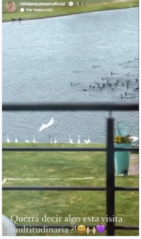 Es que la rubia subió a redes sociales una enigmática historia en Instagram que reactivó los rumores alrededor de la pareja. sobre un fondo parquizado, se observa la llegada de algunas aves que, fácilmente, pueden confundirse con cigüeñas.