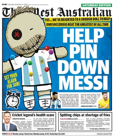 Por eso, la intención de un medio australiano fue la de ayudar a sus representantes con una curiosa iniciativa, que tiene directamente que ver con Messi y las creencias mágicas. Una polémica tapa llegó a los lectores del «The West Australian», para incentivar las diferencias.