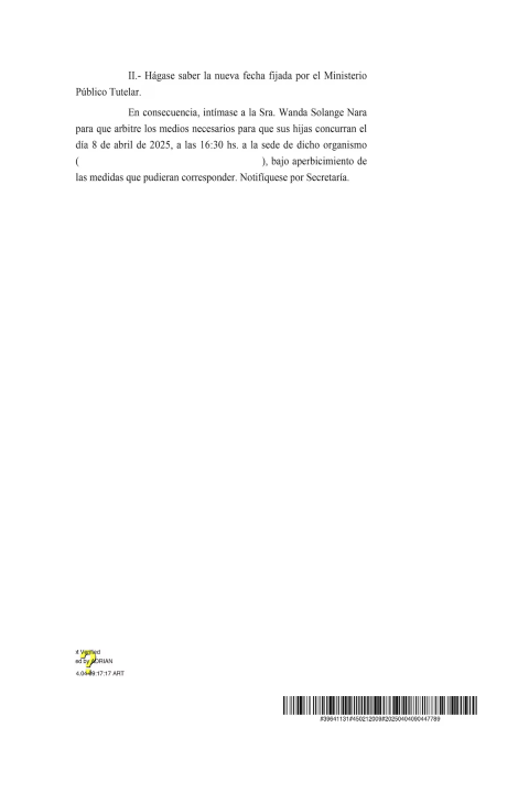 El documento judicial, fechado el 4 de abril de 2025, señala que la actora (Wanda Nara) incurrió en una nueva desobediencia a una orden judicial previamente consentida, al no garantizar la concurrencia de sus hijas a una instancia de revinculación con su padre, Mauro Icardi.