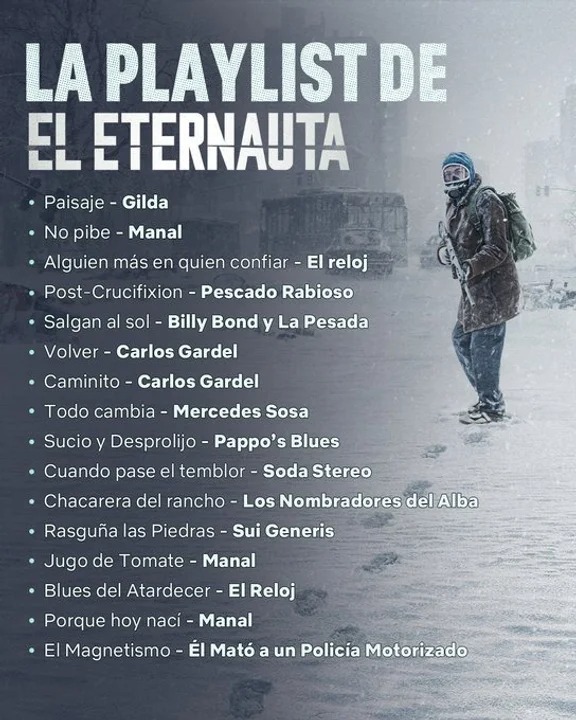 Mientras sigue el furor por El Eternauta en formato audiovisual de Netflix, su playlist comenzó a circular en redes sociales con los temas ideales para acompañar la odisea del mítico personaje creado por Héctor Germán Oesterheld. La selección musical recorre desde el tango hasta el rock nacional, atravesando décadas de historia argentina.