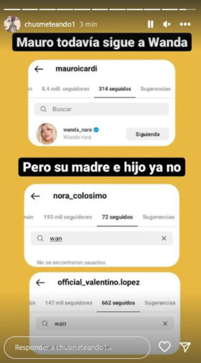 Tras el vivo, también Wanda Nara se enojó con su mamá y dejó de seguirla en Instagram. Lo mismo hizo Nora, con la empresaria.