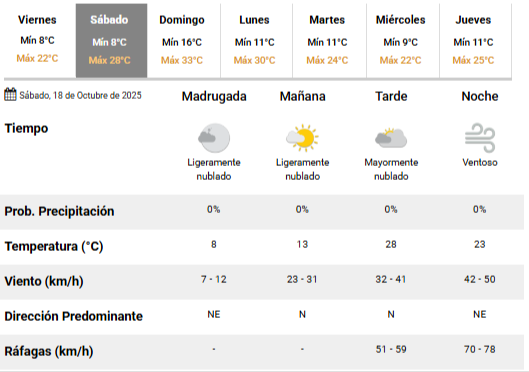 Además, se pronostica que el viento alcance los 41km/h con ráfagas de hasta 59km/h durante la tarde.