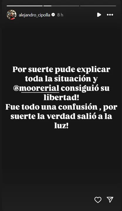 Dos horas después, el abogado publicó un comunicado anunciando que su cliente había sido liberada: “Por suerte pude explicar toda la situación y @moorerial consiguió su libertad! Fue todo una confusión, por suerte la verdad salió a la luz«.
