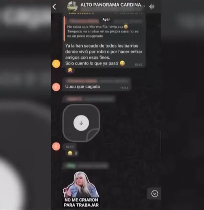 Finalmente, preguntó: «¿Les parece que hagamos una nota urgente a la administración para que se ocupen de revisar quiénes viven en nuestras torres? Me parece importante actuar con urgencia y sentido común». “Antes de que viva Morena Rial en el complejo ya había desvalijado, literalmente, un depto, ya convivimos con los ladrones hace tiempo”, señaló uno de los participantes.