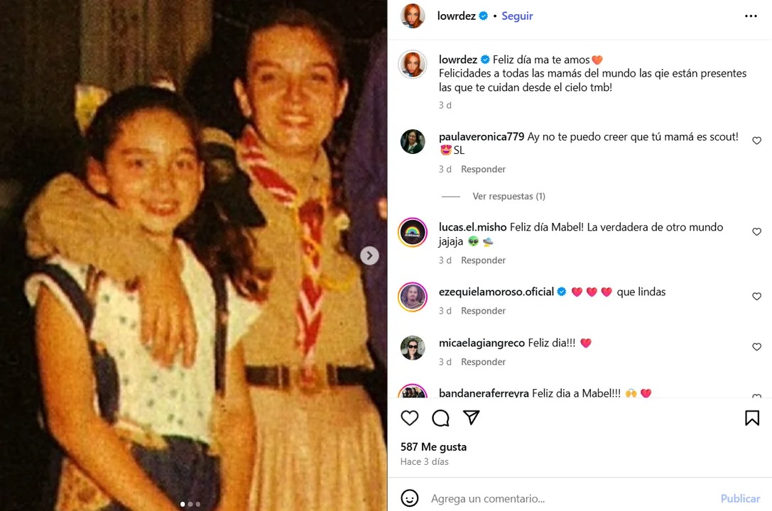 Sin embargo, Lourdes Fernández se encuentra activa en sus redes sociales e incluso le dedicó un posteo a su madre por el Día de la Madre, el pasado domingo.