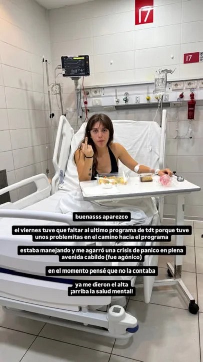 “Ya me dieron el alta, ¡arriba la salud mental!”, escribió tiempo después, para llevar tranquilidad a sus seguidores. Y después le puso humor al fotografiarse en una silla de ruedas: “Este escape room (sala de escape) es una mier…”.