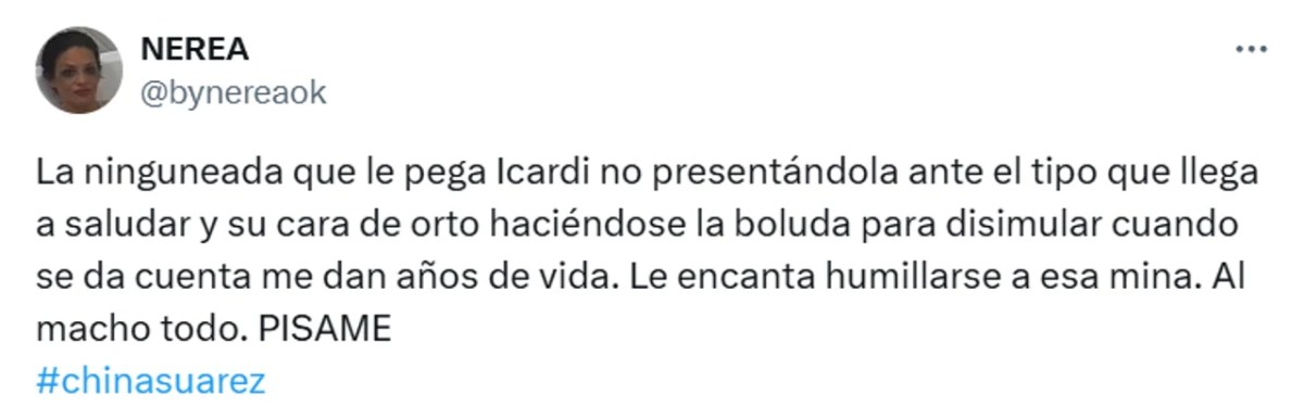«La ninguneada que le pega Icardi no presentándola ante el tipo que llega a saludar y su cara de orto haciéndose la boluda para disimular cuando se da cuenta me dan años de vida», escribió una usuaria de la red social.