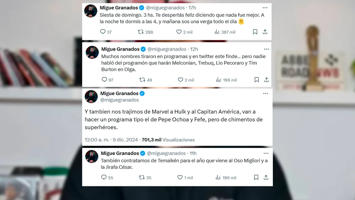 Granados continuó con el tono humorístico y agregó: “También contratamos de Temaikén para el año que viene al Oso Migliori y a la Jirafa César”. El mensaje cerró con un desopilante comentario sobre fichajes ficticios de Marvel para un programa de chimentos de superhéroes.