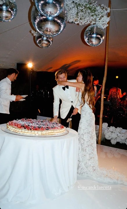 La joven de 20 años lució un vestido del diseñador Oscar de la Renta, que pudo lucirlo en una ceremonia al aire libre, repleta de flores blancas.