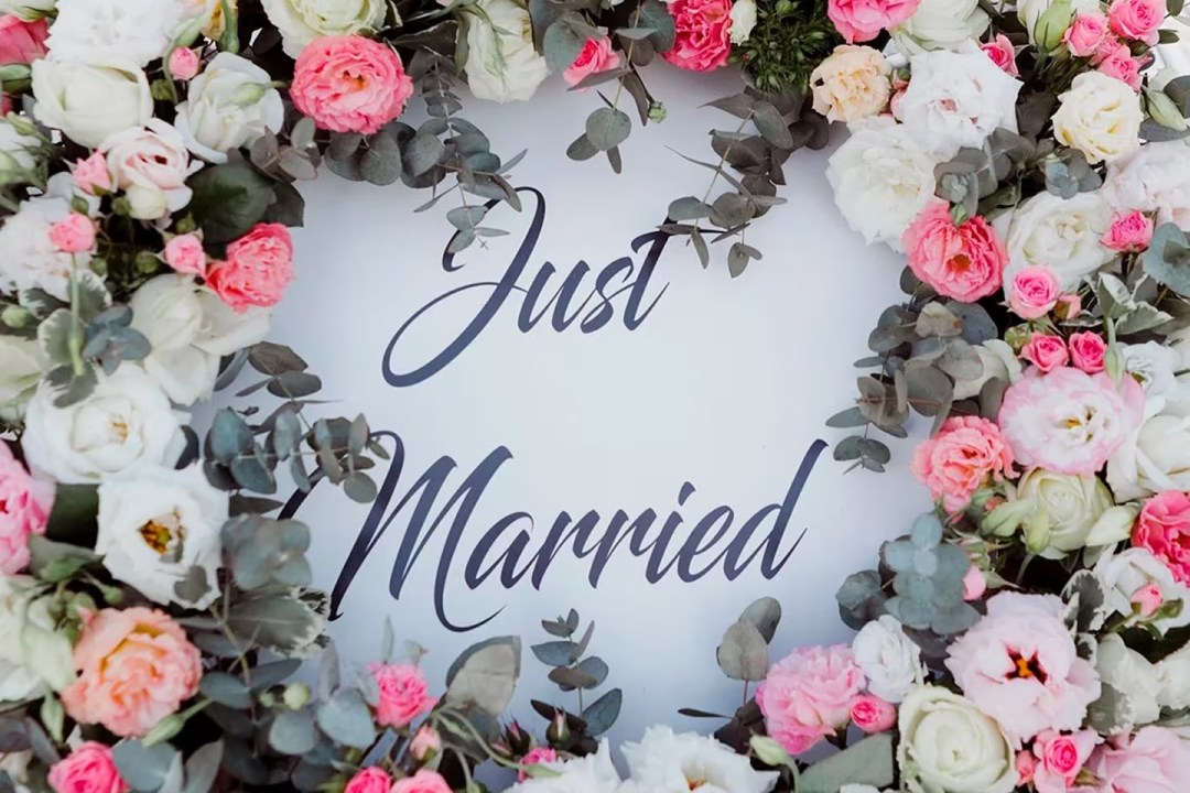 En la tercera, Nicole y Manu aparecen frente a un auto de colección que luce un arreglo floral sobre la leyenda “Just married” (”Recién casados”). En otra, están brindando junto al pastel de bodas.