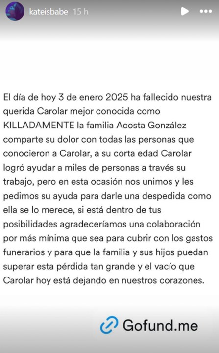 Murió la influencer Killadamente: dolor en redes sociales por Carol Acosta