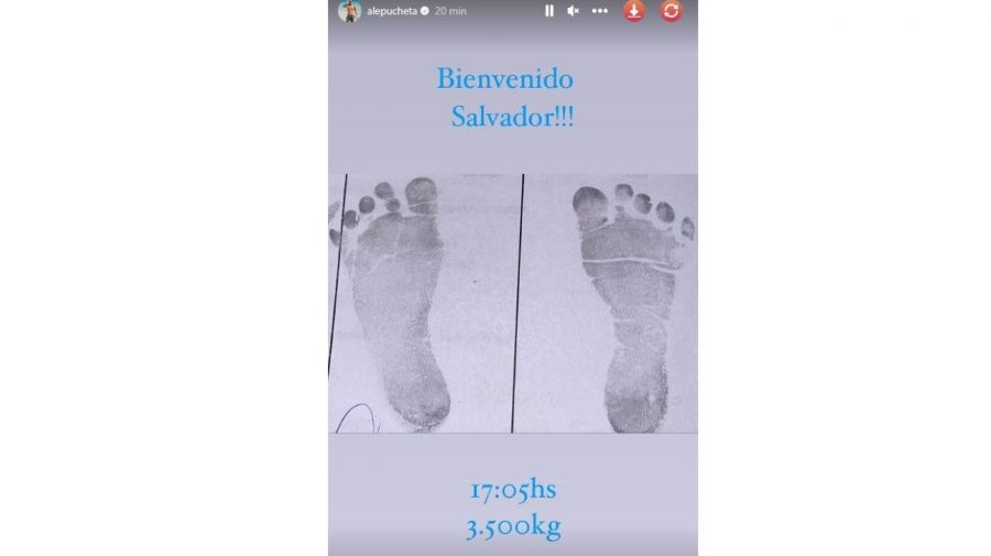 Luego, en otra historia, el productor musical y flamante abuelo de Salvador Rodríguez, compartió la primera imagen de la huella de los pies de su nieto y detalló que el pequeño nació a las 17.05 horas y pesó 3.500 kg.