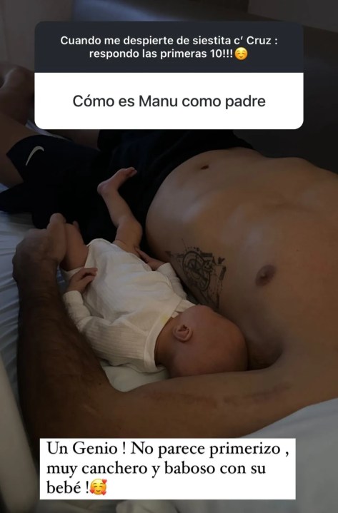«Un genio, no parece primerizo, muy canchero y baboso con su bebé», afirmó la hermana de Gege con una imagen donde se veía a Cruz acostado al lado de su papá.