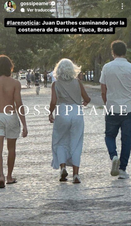 «Juan Darthés caminando por la costanera» posteó Pochi, la periodista de Gossipeame, en sus historias de Instagram. En ella, se puede ver al exactor de espaldas junto a su mujer y uno de sus hijos.