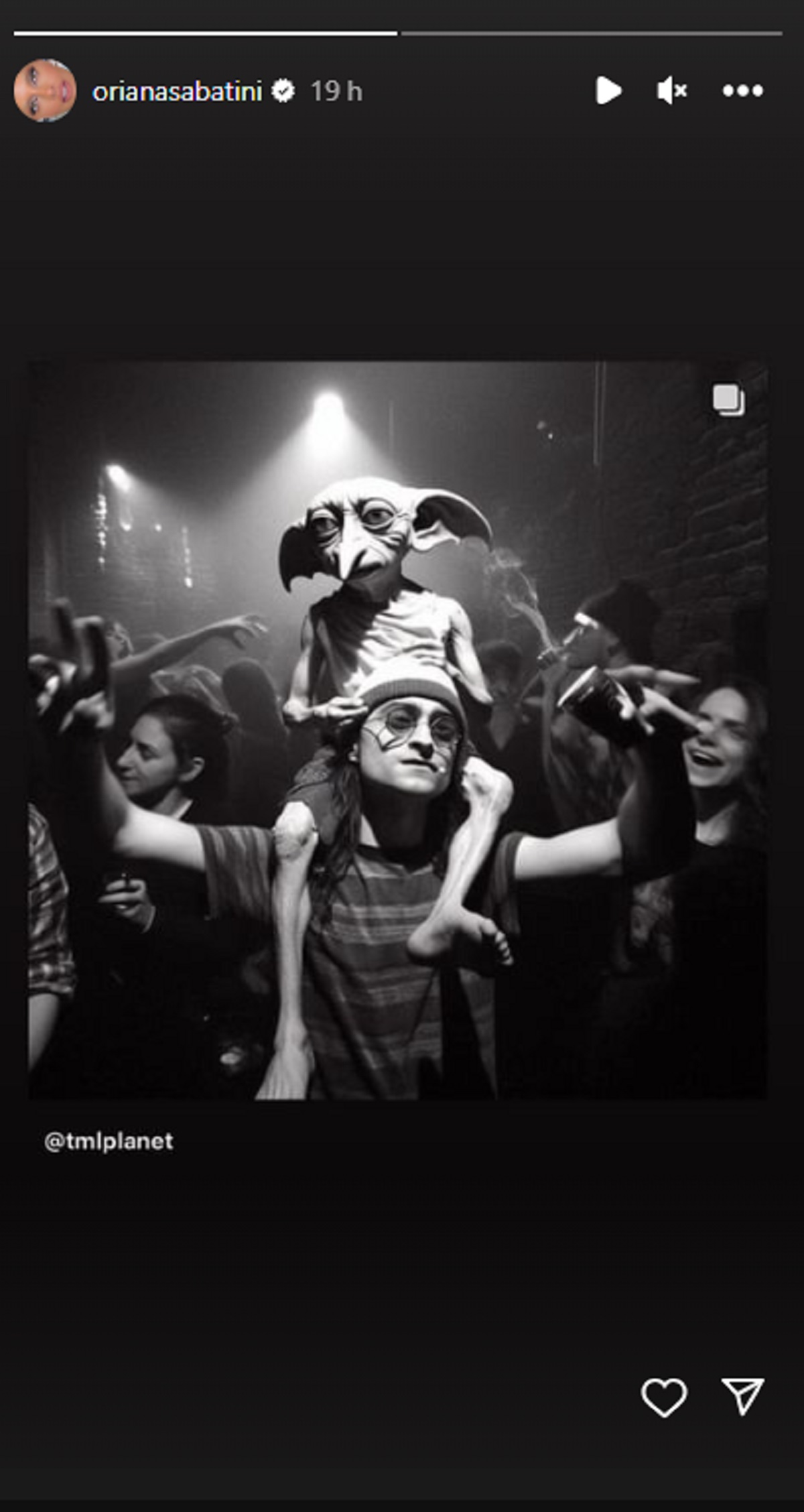 Por su parte, Oriana Sabatini compartió en sus historias dos imágenes que nada tuvieron que ver con el escándalo. Una de ellas fue con un grupo de amigas, mientras que la segunda fue una publicación sobre Harry Potter.