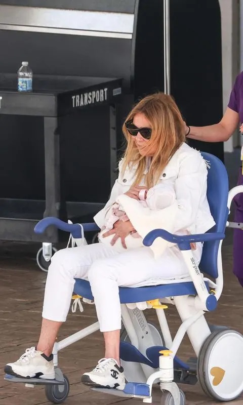 En ellas, se puede ver cómo Obregón abandona el hospital con la bebé en brazos, sentada en una silla de ruedas, siguiendo el protocolo del centro sanitario, en la que se puede leer el cartel “Mother Baby Chariot” (carrito para madre y bebé).