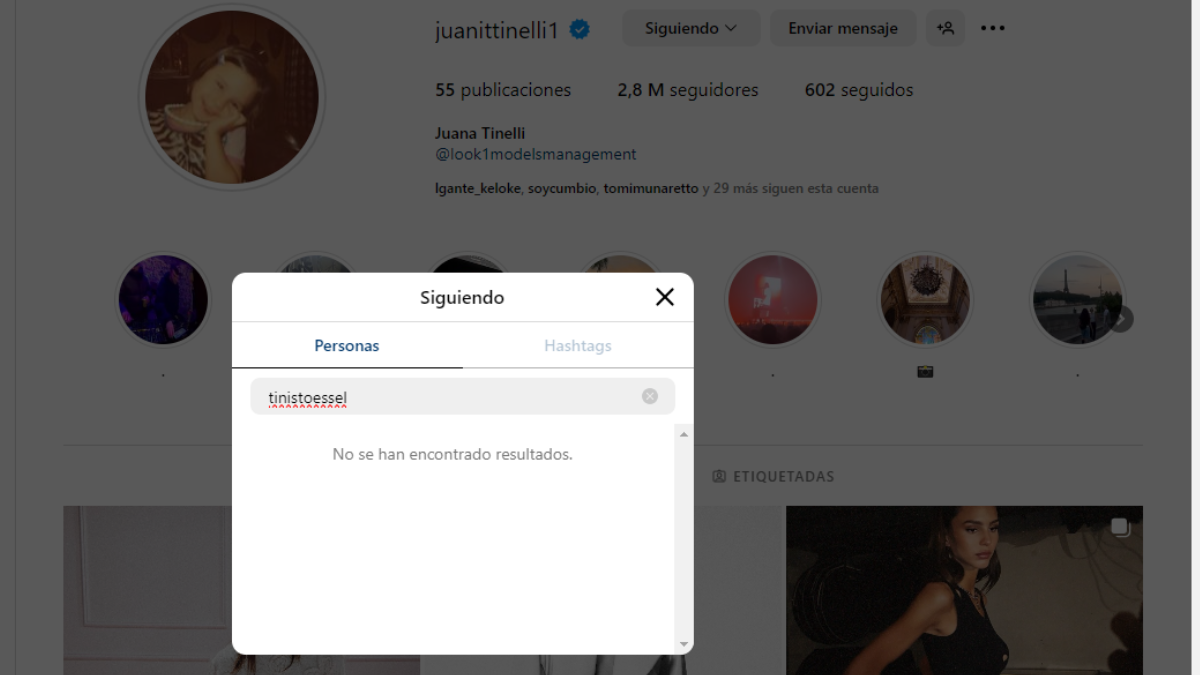 En los «seguidos» de Juana se puede ver que efectivamente ya no sigue a Tini