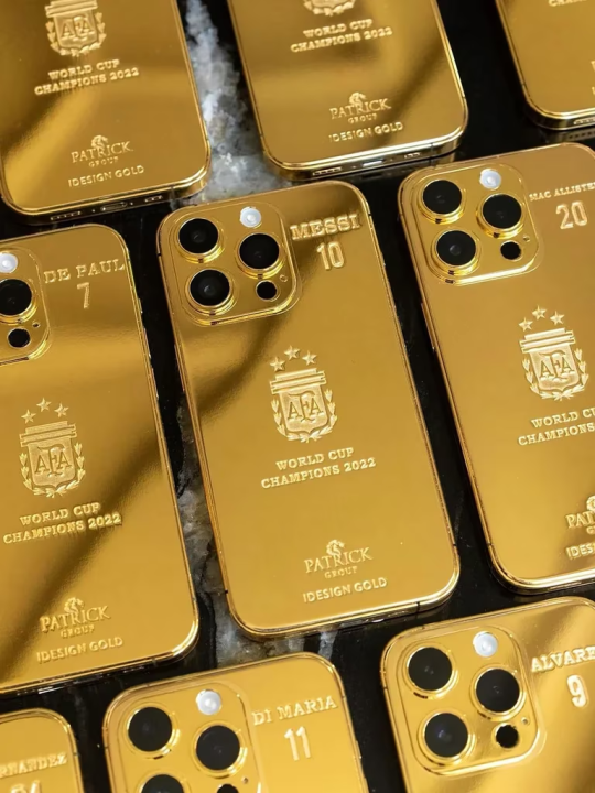 “Fue un honor entregar 35 iPhone 14 de oro a Leo Messi para sus compañeros de equipo y personal como un regalo por ganar la final de la Copa Mundial”, escribieron voceros del emprendimiento en una publicación que incluyó la imagen del CEO junto al máximo goleador de la selección argentina.