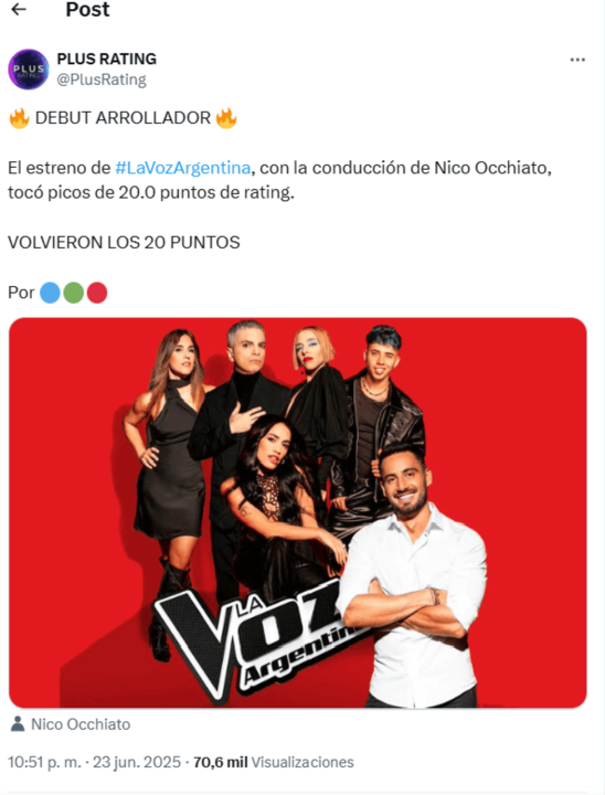 La diferencia con su principal competidor en el prime time, «Ahora Caigo» de El Trece, fue significativa. La Voz Argentina logró una ventaja de más de 19 puntos de rating, consolidándose como el claro ganador de la noche.