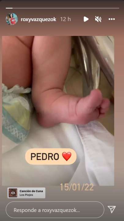 La conductora eligió Instagram para contar la noticia. En la imagen que subió en sus historias aparece el bebé recostado, aunque solo se puede ver su pequeño pie. Para acompañar la foto eligió el mítico tema de Los Piojos “Canción de cuna”.