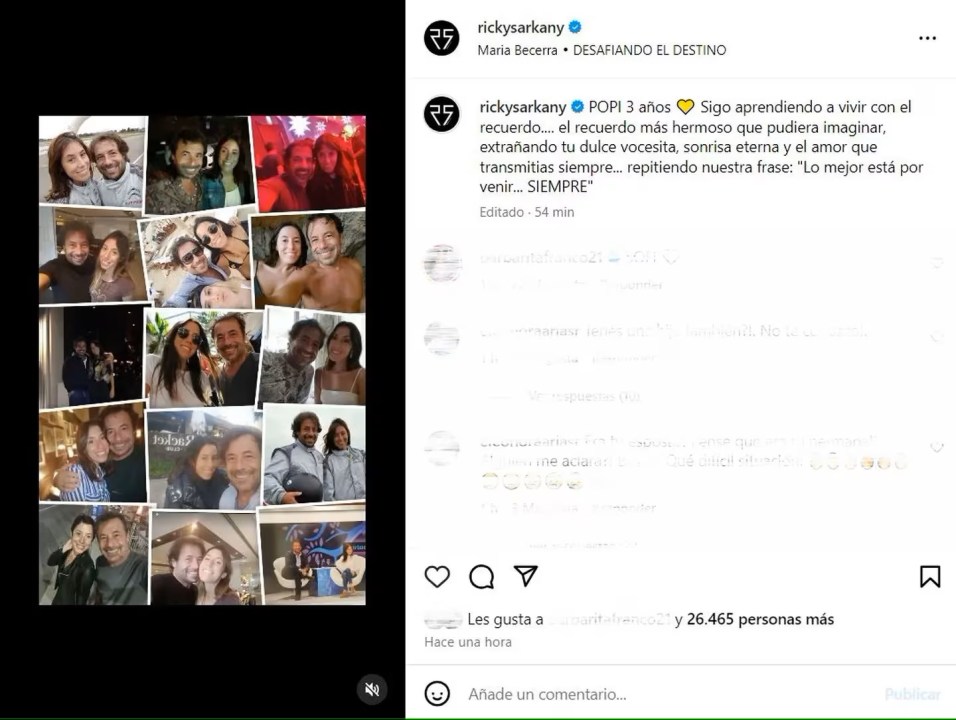 Con el recuerdo y los sentimientos a flor de piel, a tres años de la muerte de su hija Sofía, tras luchar contra el cáncer de útero, Ricky Sarkany compartió un conmovedor posteo en las redes.