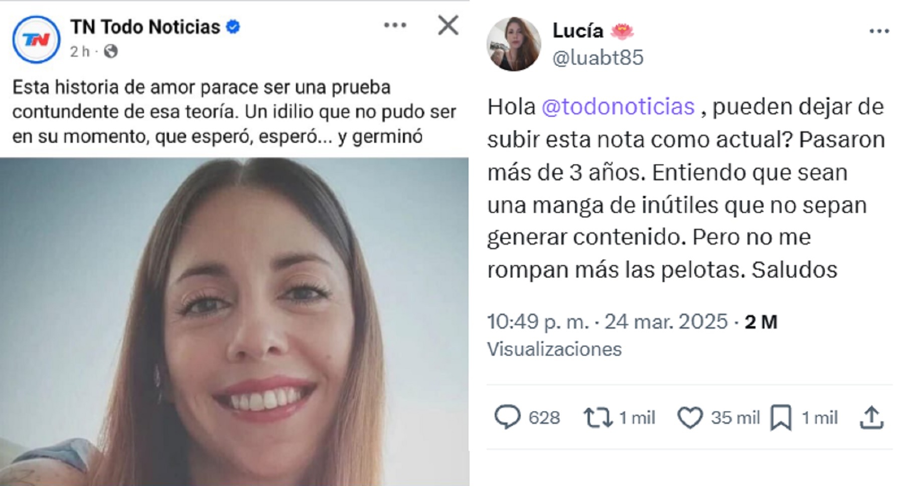 La usuaria de Twitter Lucía estalló contra el medio de noticias TN luego de ver nuevamente su historia publicada como si fuera una nota de actualidad. En el medio volvieron a exponer la relación que Lucía contó hace 3 años y la joven publicó un fuerte descargo que se hizo viral en las redes sociales.