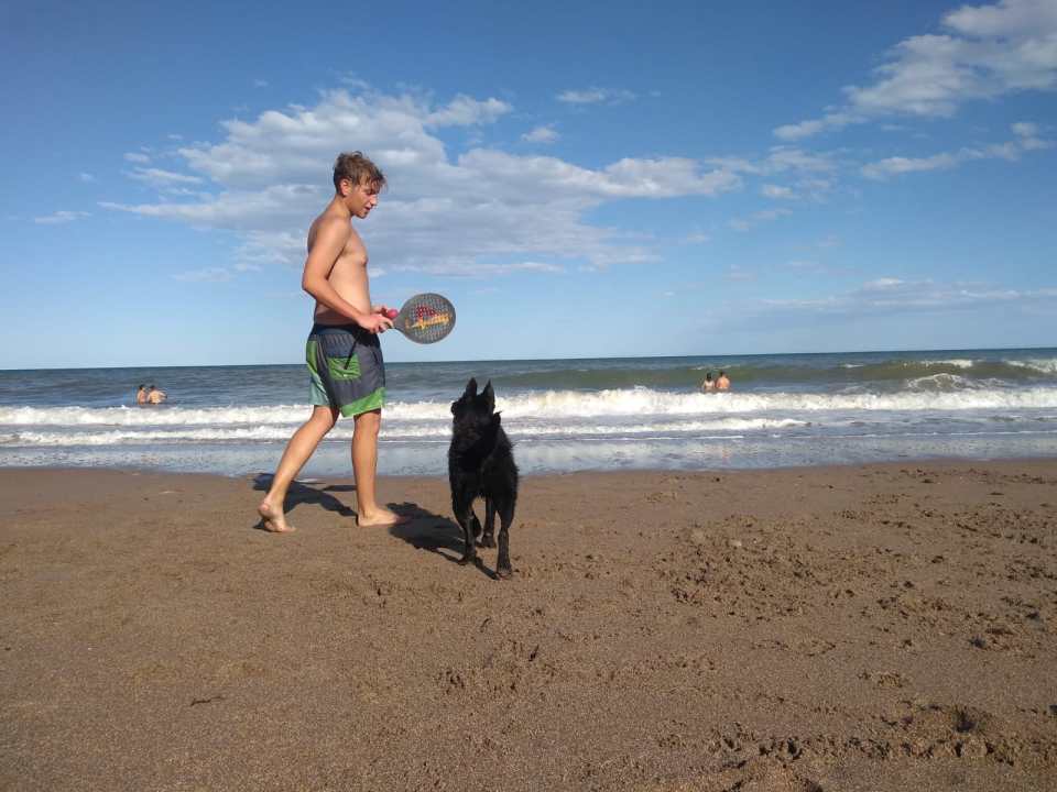 Muchos veraneantes se aferraron al juego de «acá, el que no se agacha rápido pierde», solo que tuvieron que readaptarlo ya que, el negro atrapa la pelotita entre sus dientes y luego la suelta en la mano del jugador o jugadora que se la pide. Eso sí, según las ganas y la paciencia que maneje el simpático amigo de cuatro patas.