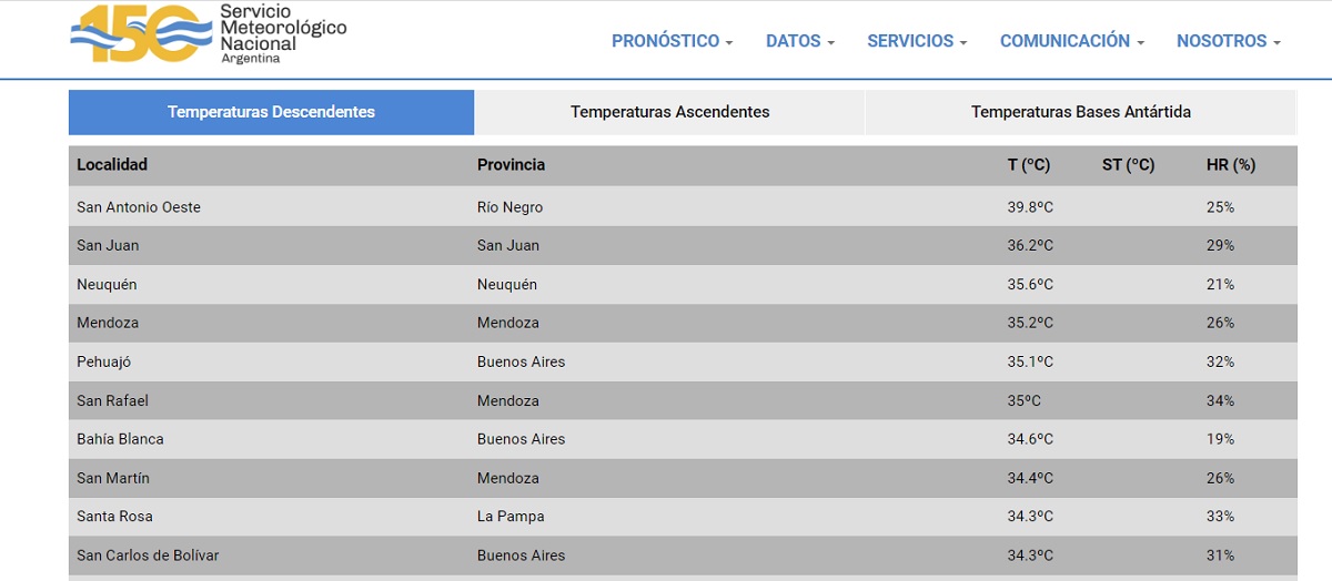 Una localidad de la costa lidera el ranking de temperatura que elabora el Servicio Meteorológico Nacional. En tercer lugar está una ciudad de Neuquén.