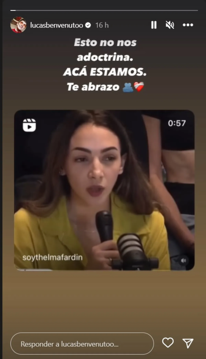«Te abrazo»: el mensaje de Lucas Benvenuto a Thelma Fardín, tras la absolución de Juan Darthés