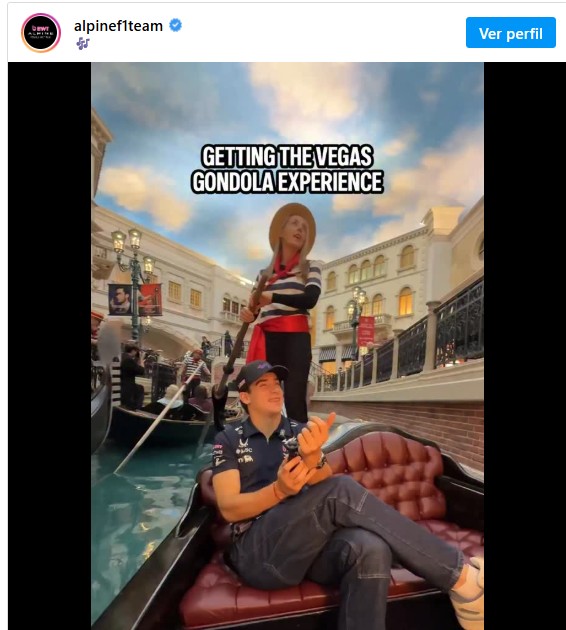 La escudería Alpine de Fórmula 1, en la que corre Franco Colapinto, compartió un divertido video de un viaje en góndola del piloto argentino en Las Vegas, donde se llevará a cabo una nueva fecha del campeonato.
