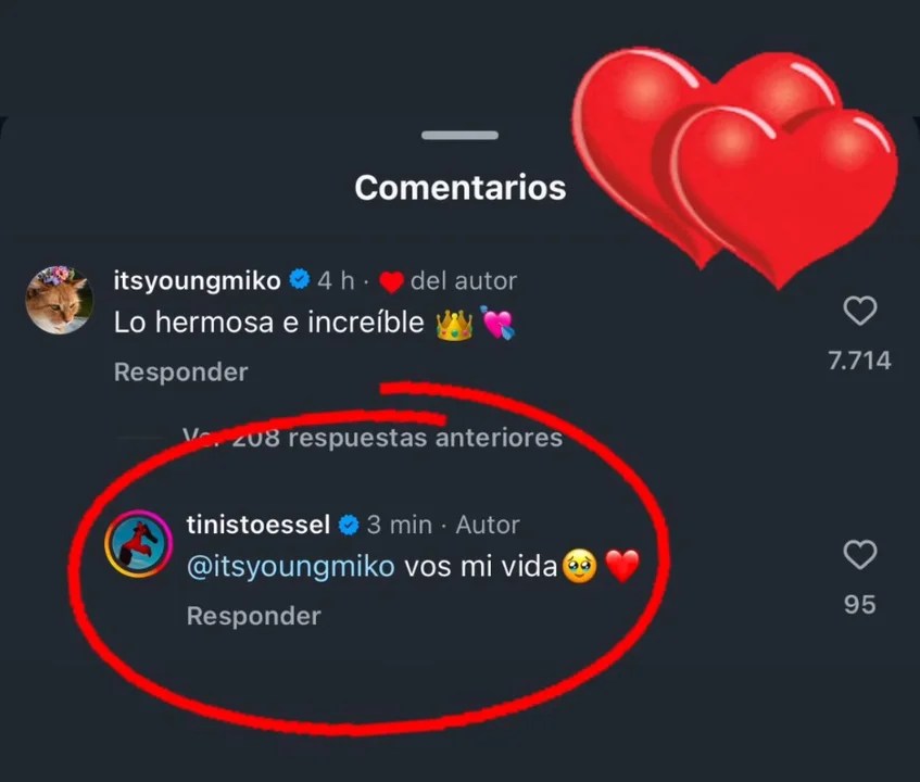 Los rumores sobre un posible romance entre Tini Stoessel y Young Miko se reavivaron con una reciente interacción en redes sociales. En uno de los posts más recientes de Tini en Instagram, la cantante puertorriqueña respondió con un «ready», mientras que Tini le contestó cariñosamente llamándola «mi amor». Esta interacción fue suficiente para que los seguidores de ambas artistas comenzaran a especular sobre su relación.