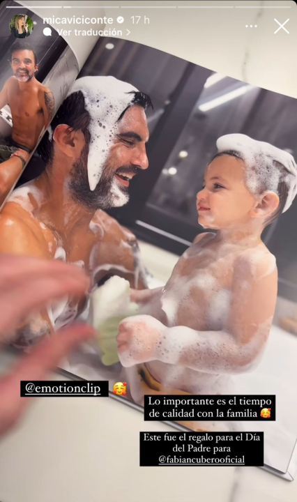 «Lo importante es el tiempo de calidad con la familia. Este fue el regalo para el día del padre», escribió la pareja de Poroto y mostró un álbum con fotos. La publicación fue replicada por Fabián en sus redes sociales sin agregar ningún comentario.
