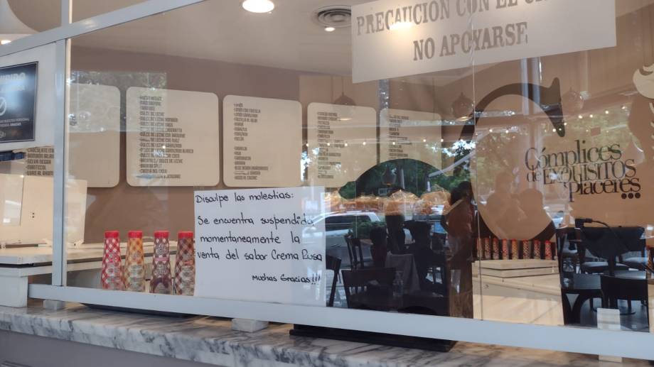 «Disculpe las molestias, se encuentra suspendida momentáneamente la venta del sabor crema rusa. Muchas gracias», fue el cartel que llamó la atención de los vecinos.