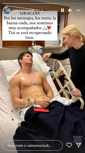 Mazza utilizó su Instagram para agradecer el el apoyo recibido: «Gracias por los mensajes, los rezos, la buena onda, nos sentimos muy acompañados. Tizi se está recuperando bien«, señaló Mazza en la red social.