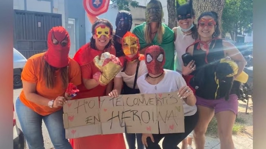 Para que transitara la dura enfermedad de la mejor manera, el grupo decidió acompañarla a cada sesión de quimioterapia con distintas temáticas, disfraces y carteles con emotivos mensajes y fotos de la infancia.
