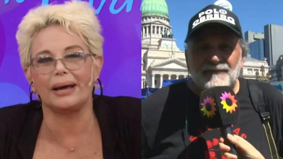 El referente del Polo Obrero brindó una entrevista desde la plaza del Congreso y lanzó picantes revelaciones sobre la conductora. “Me gusta como hombre, es grandote”, confesó minutos más tarde la actriz. Mirá la secuencia.