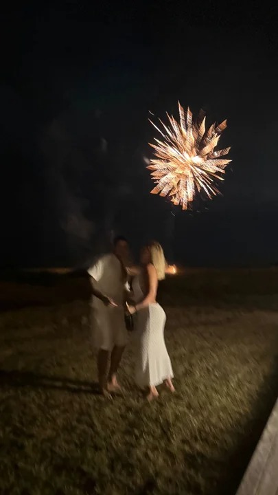Por último, la conductora se mostró abrazada, en el agua, junto a su pareja y enfatizó: “Gracias 2025 por tanto amor verdadero”.