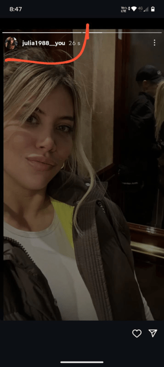La imagen no llamaba particularmente la atención hasta que los usuarios repararon en un detalle: no fue publicada desde su cuenta oficial. En cambio, apareció durante unos segundos en el perfil @julia1988__you, un nombre hasta entonces desconocido, pero que todo indicaría que tiene la función de ser una cuenta paralela que Nara usaría para recorrer redes ajenas sin ser detectada y con total libertad.