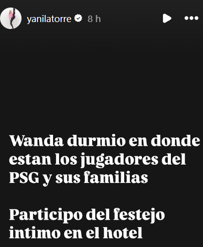 En la primera de las historias, la coductora señaló: «Me dicen que Wanda está en una con un jugador del PSG. Desmayada estoy. No tengo paz. Lo amenacé a Diego que no vuelva hasta averiguar quién es».